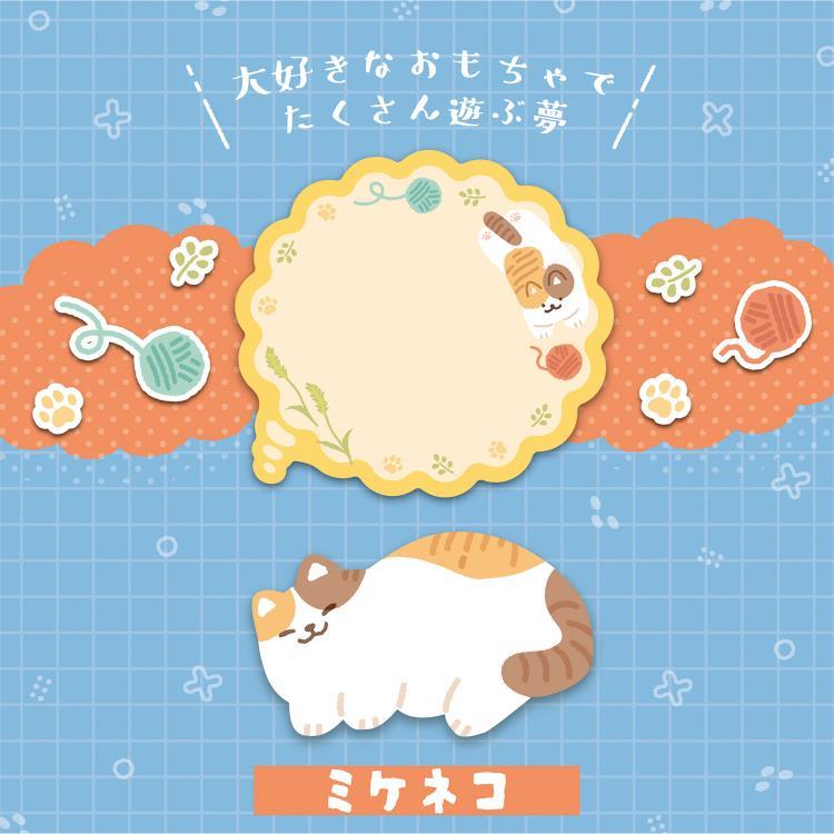 眠たげな表情の動物とふわふわした夢のかたちを組み合わせた、使い分けできる2サイズの付箋です。