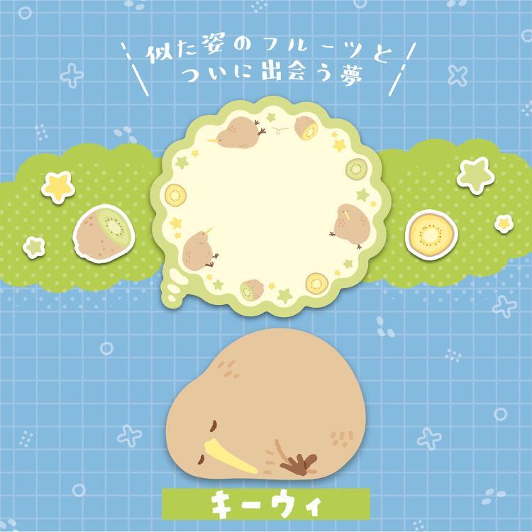 眠たげな表情の動物とふわふわした夢のかたちを組み合わせた、使い分けできる2サイズの付箋です。