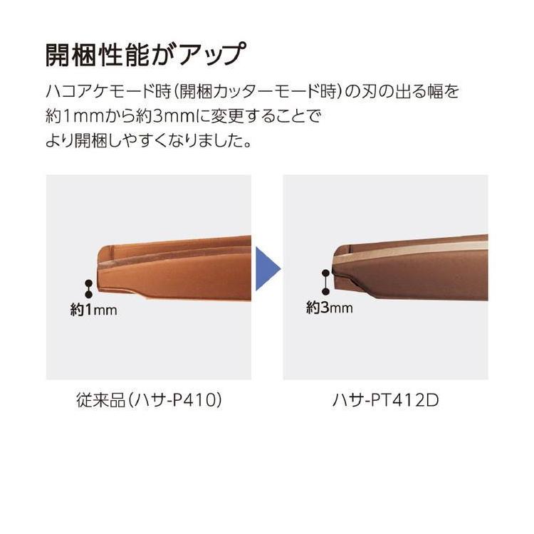 ハサミとしての機能を果たしながら段ボールの開梱に適した「ハコアケモード」を搭載。