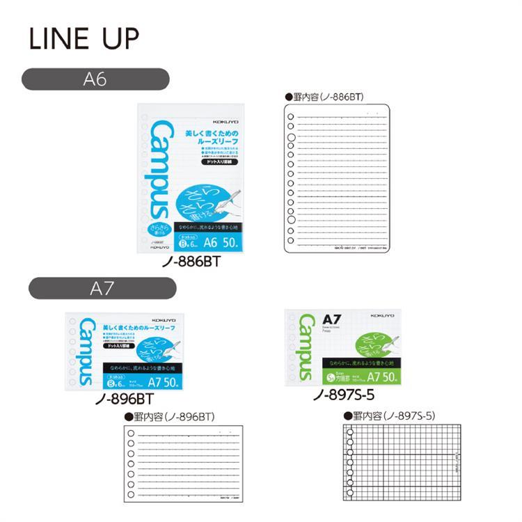 - キャンパスルーズリーフ A6 さらさら書ける B罫ドット 50枚