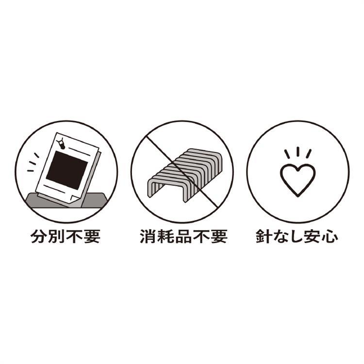 針を使わずに紙をとじることができるので、針補給の必要がありません。廃棄する際に分別する必要がなく、針の混入する心配もありません。