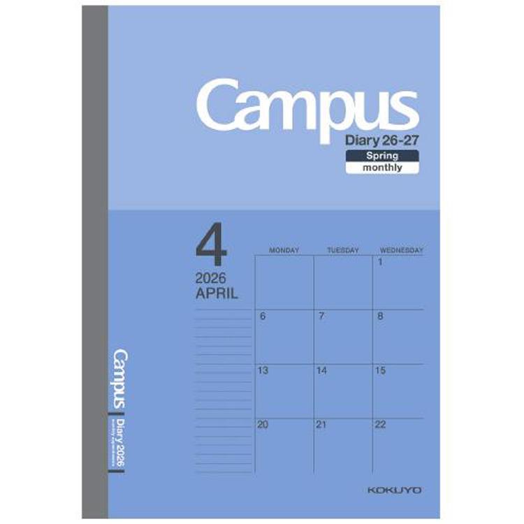 Campusシリーズの書きやすさをそのままに、薄くて軽いマンスリータイプ・年度始まり(3月~翌4月)ダイアリーです。