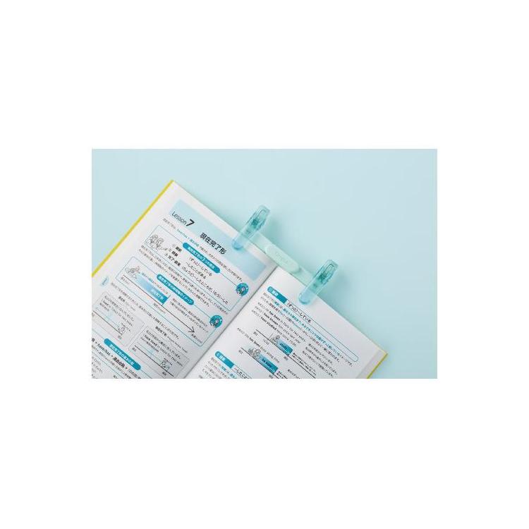上側のクリップは下側のクリップに比べて短く、半透明の素材が使用されているため、ページの上部にある文字を隠しにくい設計です。