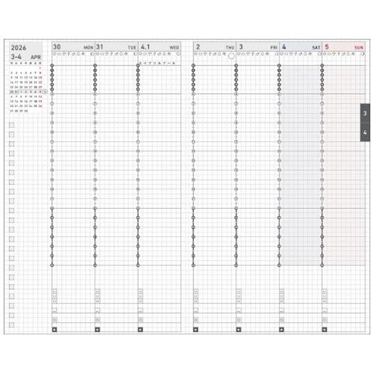 週間バーチカルレイアウトは、時間の流れを縦軸で把握できる形式。