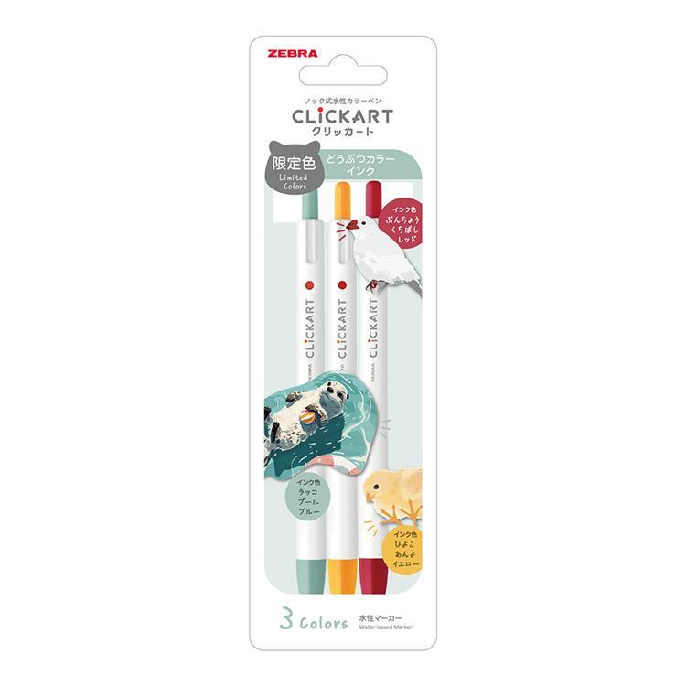 キャップレスで使いやすい ノック式水性カラーペン「CLICKART(クリッカート)」に、どうぶつのワンポイントカラーをイメージした数量限定シリーズが登場。