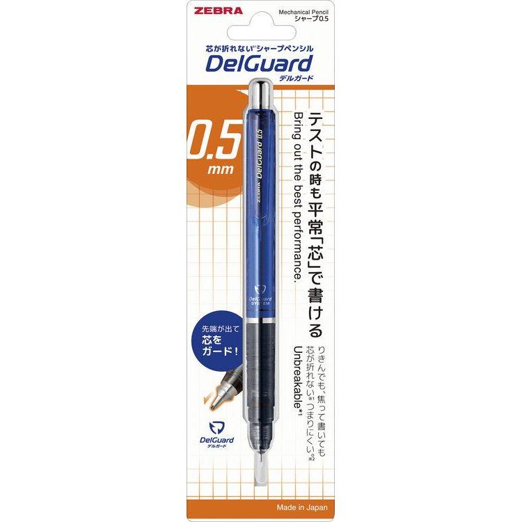 垂直と斜め二つの強い筆圧に対応した芯折れを防ぐ機構「デルガードシステム」搭載の0.5mmシャープペン。