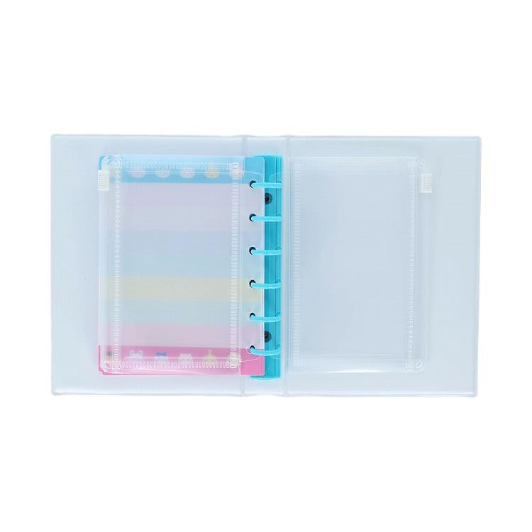ミニ6穴サイズで、表裏フルカラー仕様のシール台紙10枚とクリアポケット3枚が付属しています。