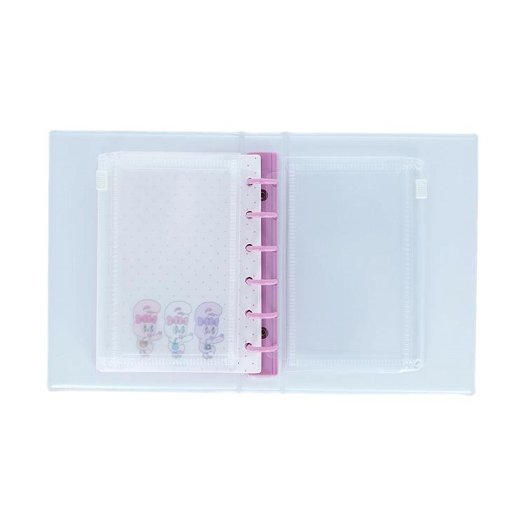 ミニ6穴サイズで、表裏フルカラー仕様のシール台紙10枚とクリアポケット3枚が付属しています。