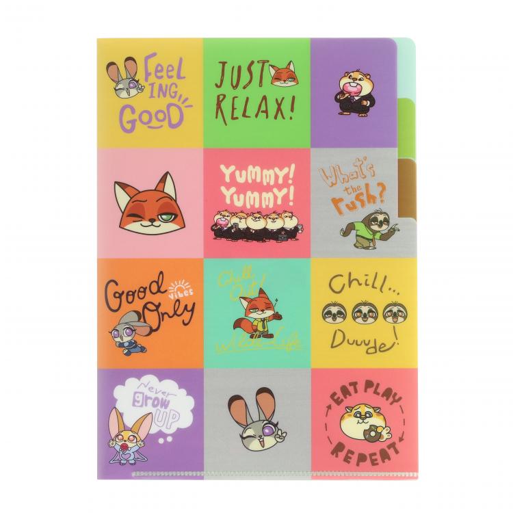 ズートピアのキャラクターがデザインされた、A5サイズの3ポケットクリアファイルです。