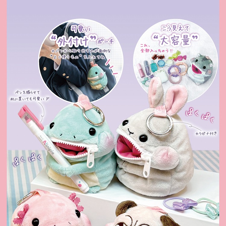キャラクター口部分が収納スペースになった遊び心のたっぷり詰まったユニークなポーチ「ほおばりいず」。