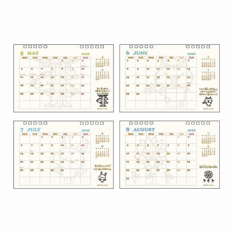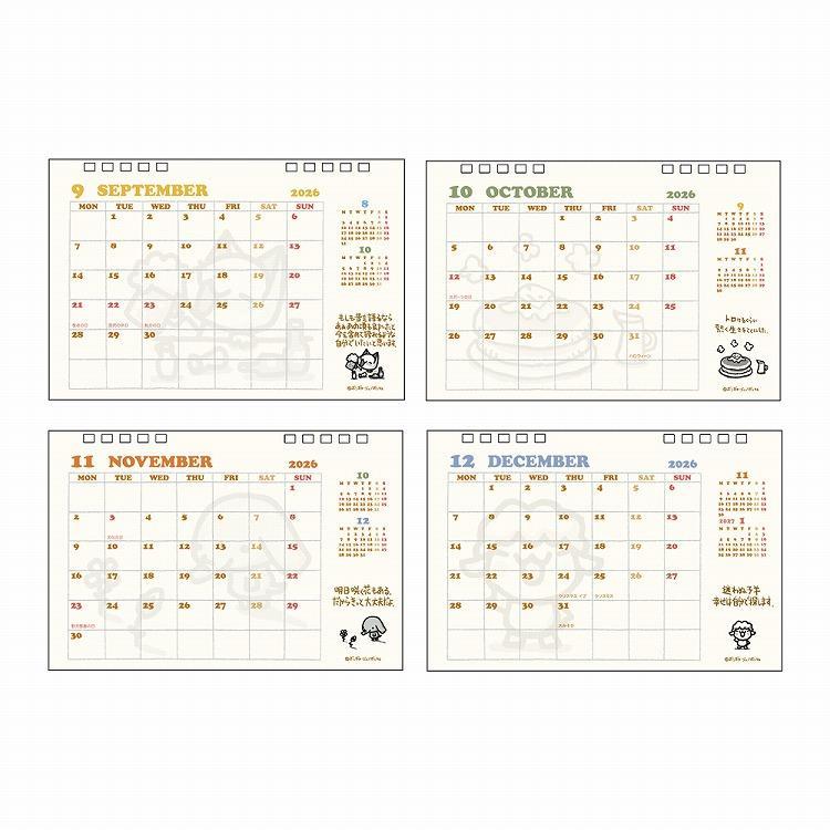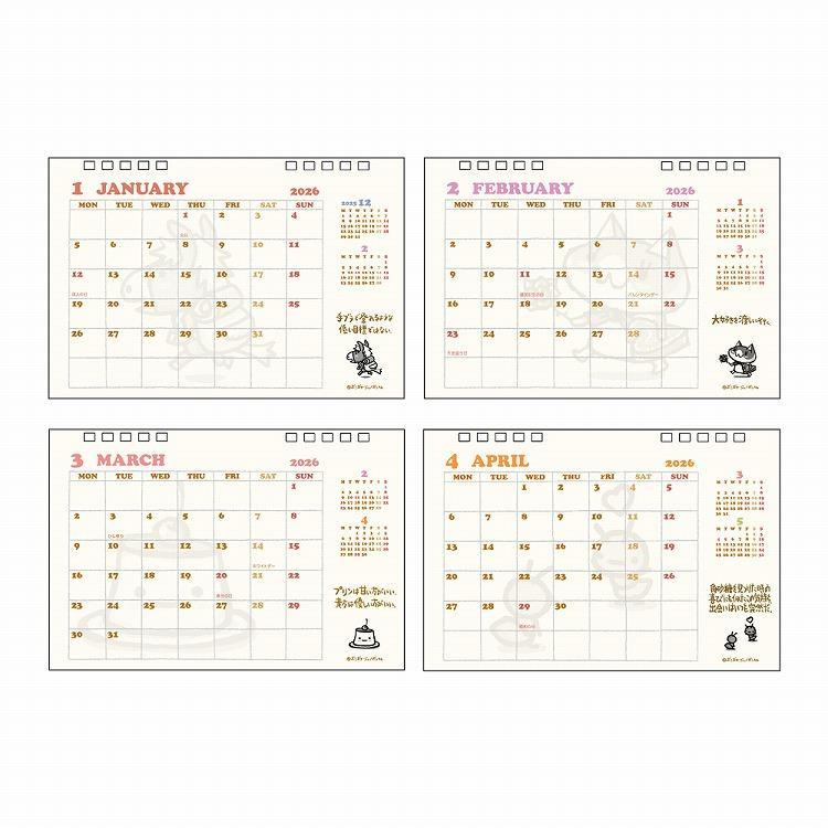 毎月異なるイラストが楽しめる、キャラクターデザインの2026年版カレンダー(卓上タイプ)です。