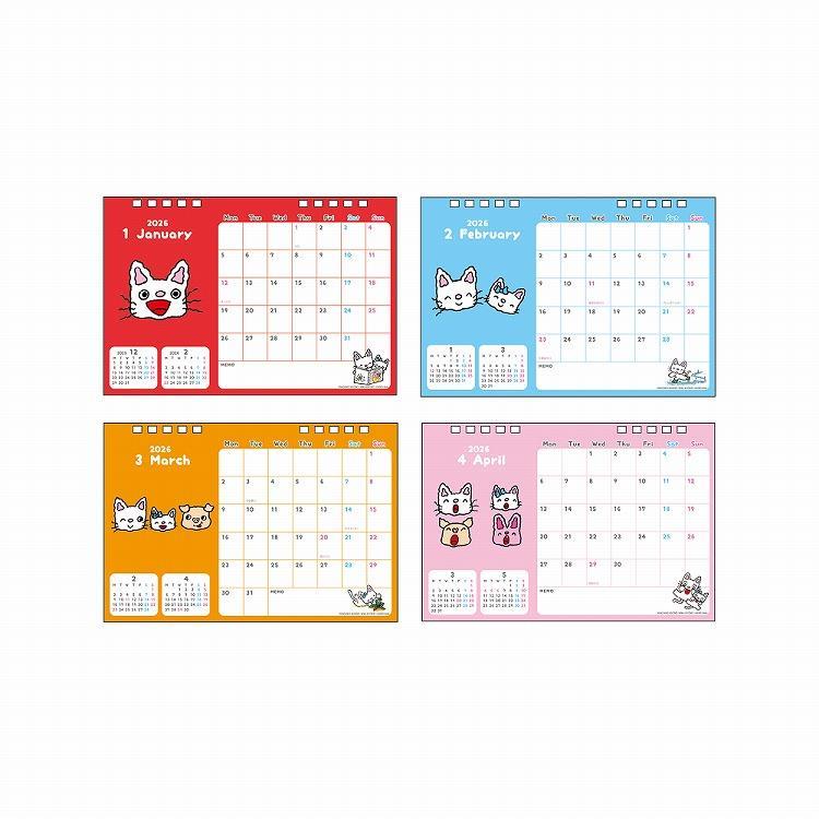 毎月異なるイラストが楽しめる、キャラクターデザインの2026年版カレンダー(卓上タイプ)です。