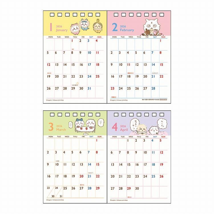 2026年1月始まりカレンダー 卓上 2ヶ月 ちいかわ