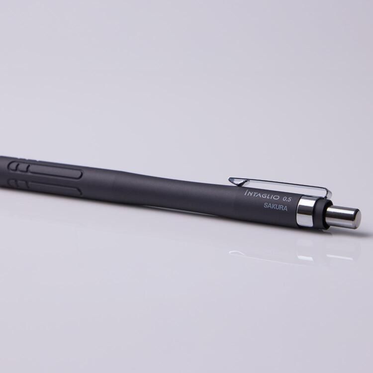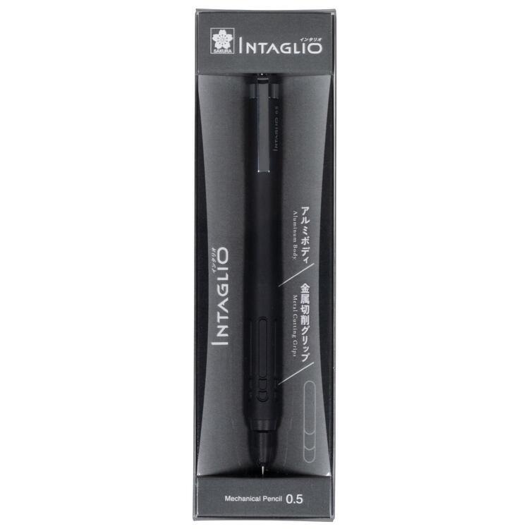 手にフィットする曲線的なアルミボディに、すべりにくい金属切削軸を採用したシャープペン「INTAGLIO((インタリオ)」。
