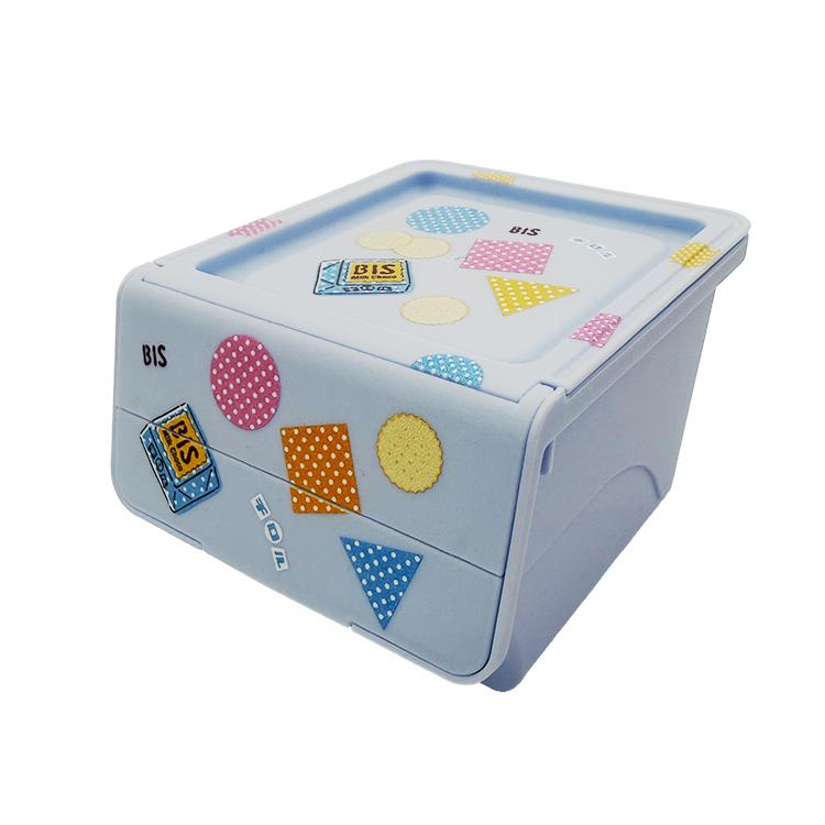 チロルチョコのパッケージをモチーフに優しい色合いでデザインされた収納ケース「コンテナチロル」です。