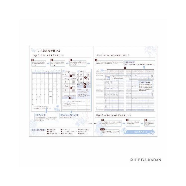 花をふんだんにあしらった、開くたびに気分も華やぐ家計簿です。