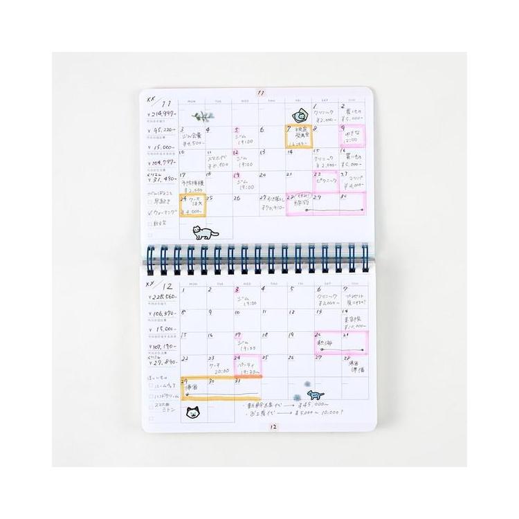 12ヶ月分のマンスリーページには、予定と一緒に管理することで今月必要なお金を把握することができます。
