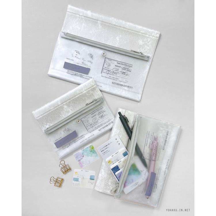 一体型のファスナーケースには、ペンのほか付箋や消しゴムなど、よく使う文具をまとめて収納できます。