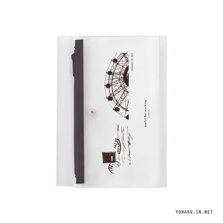 ノートや手帳といっしょに、文具や書類をまとめて持ち運べる、ロフト限定デザインのB6サイズペンケース付きカバー。