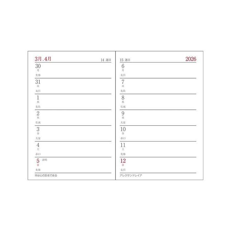 2025年12月始まり手帳 見開き2週間 アポイント E1014 レッド