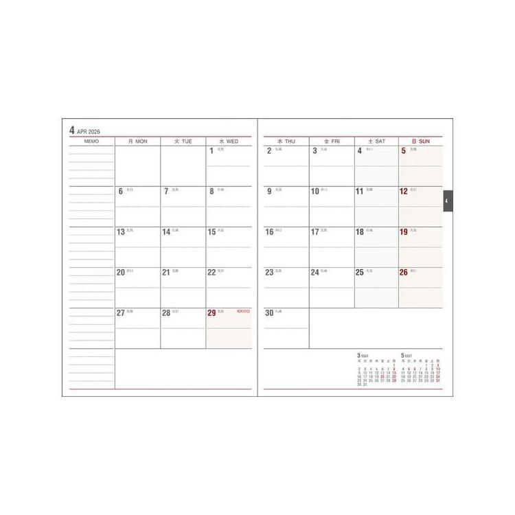 左半分が1週間のスケジュール、右半分が横罫のメモスペースになっており1週間の予定とメモを見開きで管理できる人気のレイアウトです。1週間の予定をざっくり把握したい、フリースペースにメモを取りたい人におすすめです。