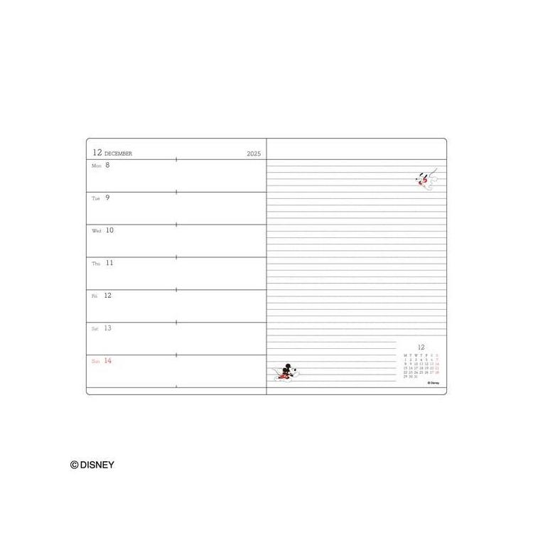 - 2025年12月始まり手帳 週間レフト B6 1週間+横罫 ディズニー E6160 ブラック