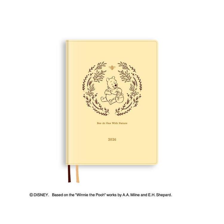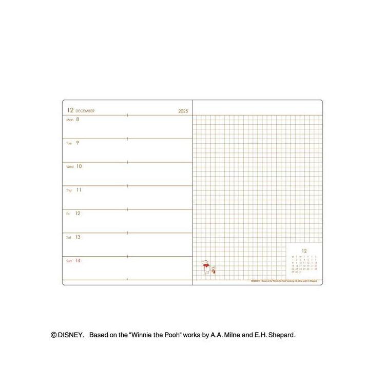 プーさんと仲間たちがレイアウトされた、シンプルで癒されるデザイン。予定もメモもたっぷり書ける1週間+方眼のレイアウト。かわいい切り取りメモ付きです。