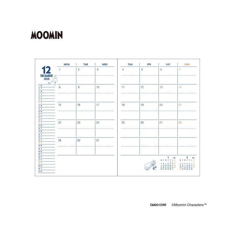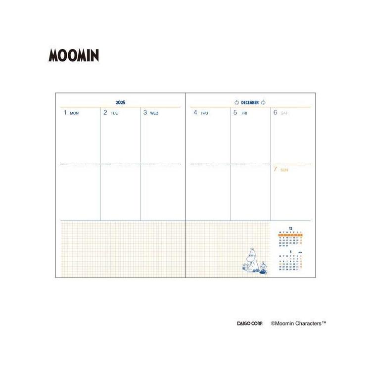 - 2025年12月始まり手帳 週間バーチカル B6 ムーミン E6218 ムーミンと仲間たち ネイビー