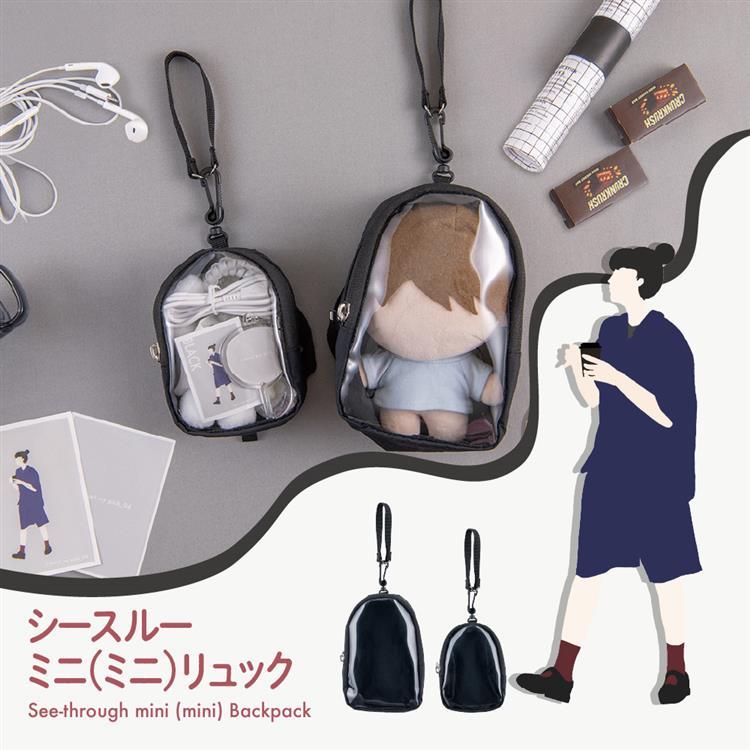 ぬいぐるみや小物をカジュアルに収納できるリュック型ポーチ『シースルーミニリュック』。