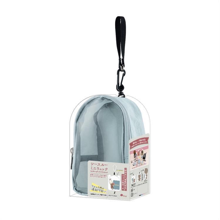 ぬいぐるみや小物をカジュアルに収納できるリュック型ポーチ『シースルーミニリュック』。
