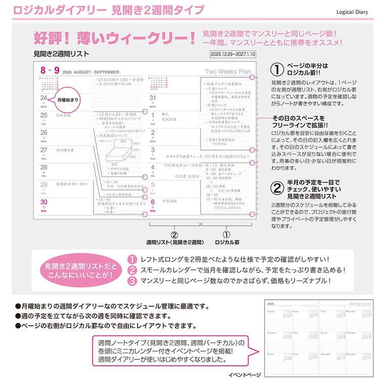2026年1月始まり 週間ブロック A5 ロジカルダイアリー 見開き2週間B クラフト
