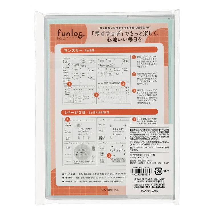 - ライフログ用日付フリー手帳 A6 ファンログ ミント