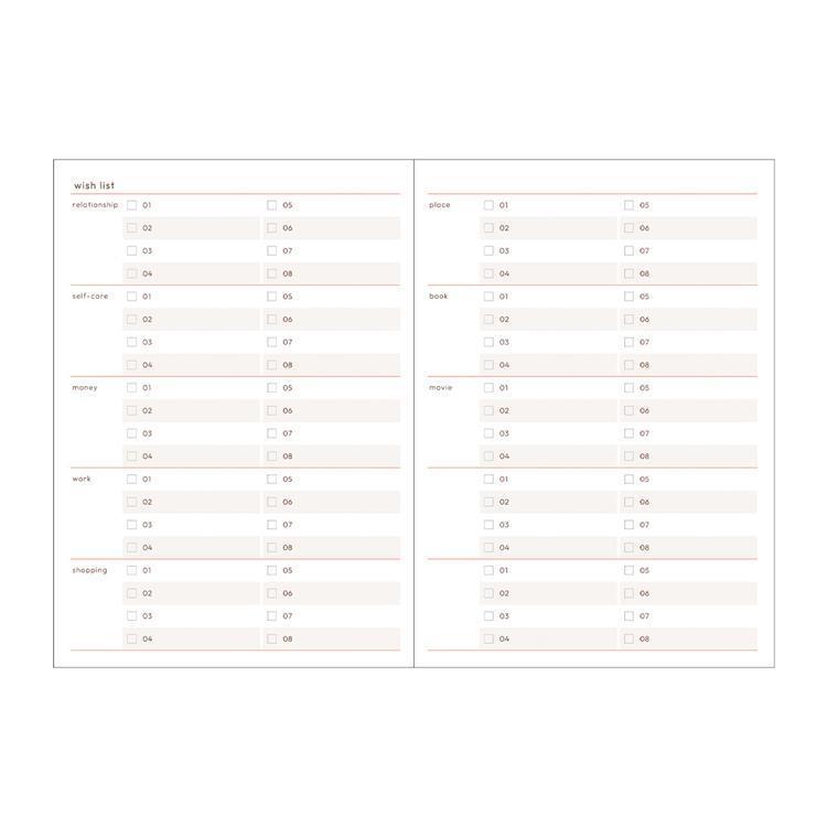マンスリーやウィッシュリスト、5mm方眼メモなど、8種類の便利なページを収録。