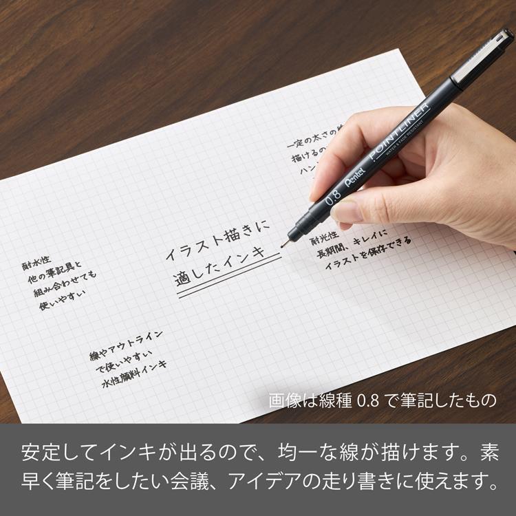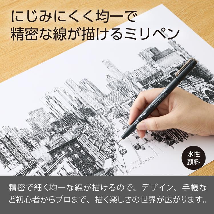 - (インク)水性顔料、(インクカラー)ブラック、(線幅)0.05mm