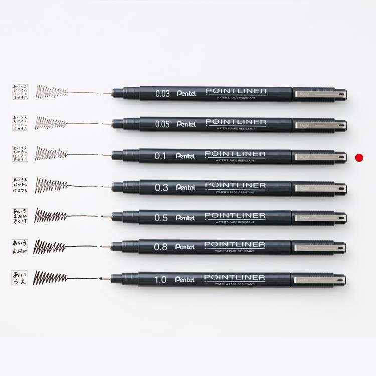- (インク)水性顔料、(インクカラー)ブラック、(線幅)0.1mm