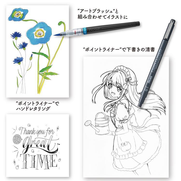 0.03mmから1.0mmまで多彩な太さが揃い、イラストや手帳、デザインに最適。