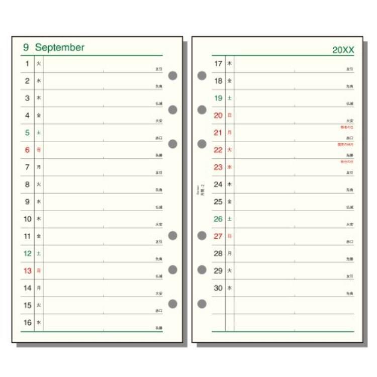 手帳専用紙 トモエリバー使用。見開き両面1ヶ月リスト式。