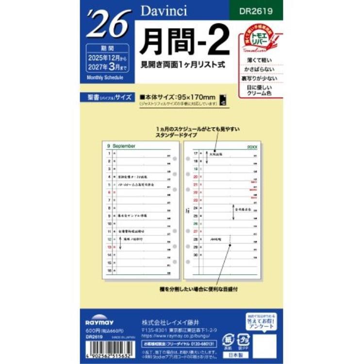 2025年12月始まりシステム手帳用リフィル バイブル ダヴィンチ 月間2