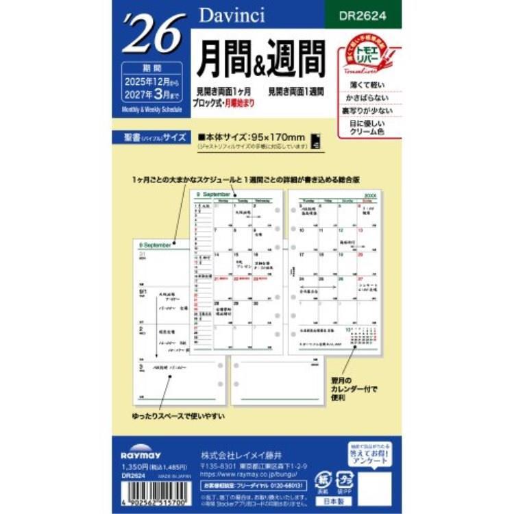 - 2025年12月始まりシステム手帳用リフィル バイブル ダヴィンチ 月間&週間