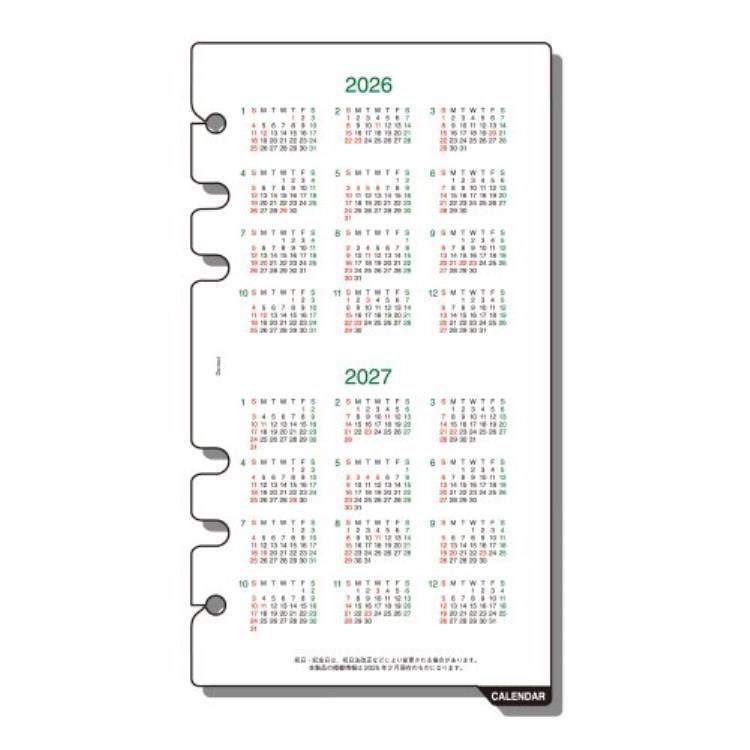 - 2026年1月始まりシステム手帳用リフィル バイブル ダヴィンチ 下敷カレンダー