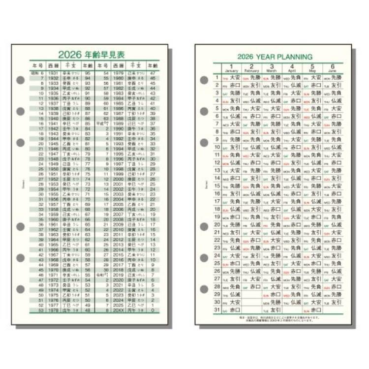- 2026年1月始まりシステム手帳用リフィル バイブル ダヴィンチ 六曜年齢早見表