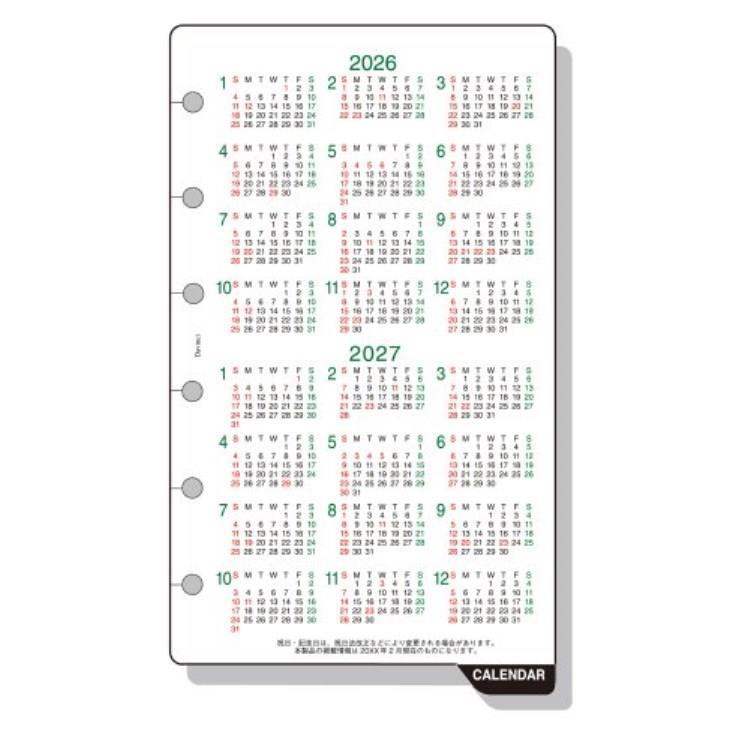 - 2026年1月始まりシステム手帳用リフィル ミニ6 ダヴィンチ 下敷カレンダー