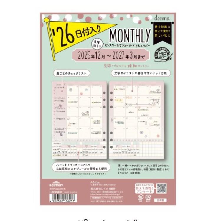 2025年12月始まりシステム手帳用リフィル A5 デコナ 月間1