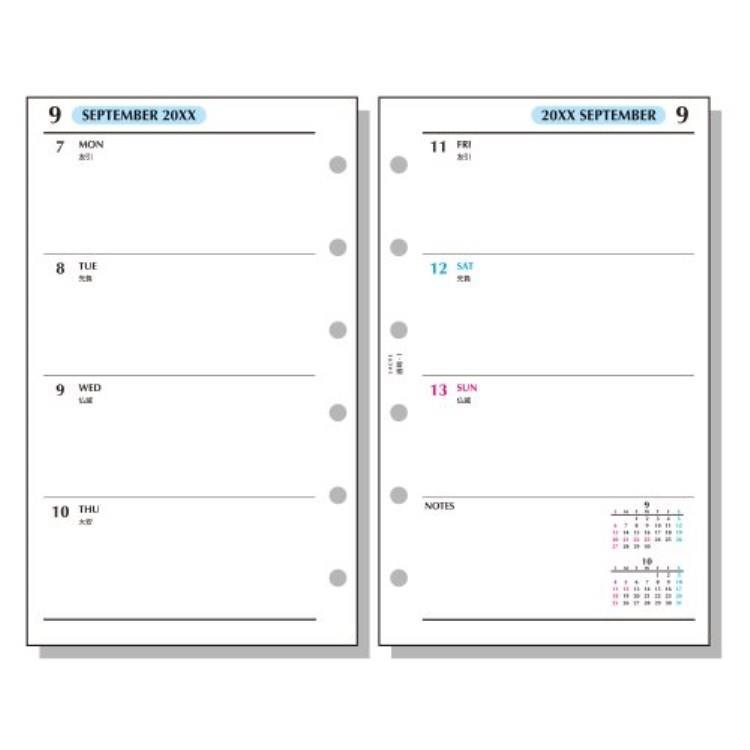 - 2025年12月始まりシステム手帳用リフィル ミニ6 ラセ 週間1