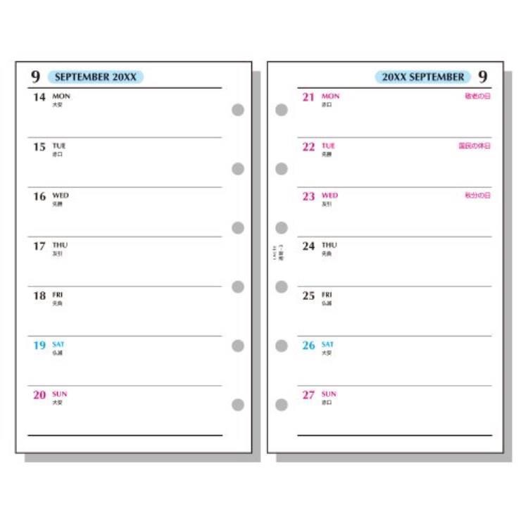 - 2025年12月始まりシステム手帳用リフィル ミニ6 ラセ 週間3