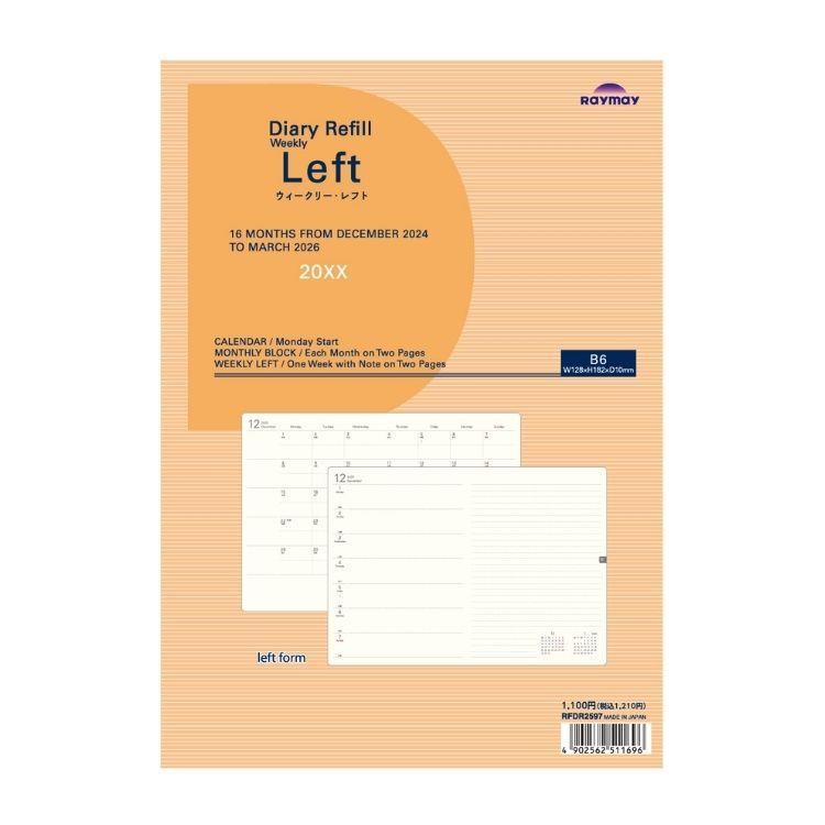 - 2025年12月始まり手帳 週間レフト B6 リフィル
