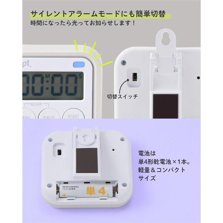・図書館や自習室など静かな環境でも使えるように、アラームを消音にして光で時間を知らせるサイレントアラームモード搭載。
