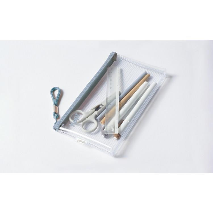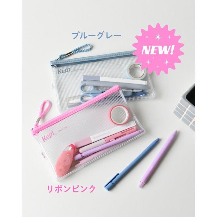 表面がクリアで、裏面がメッシュ繊維入りデザインの「Kept(ケプト) クリアペンケース」。