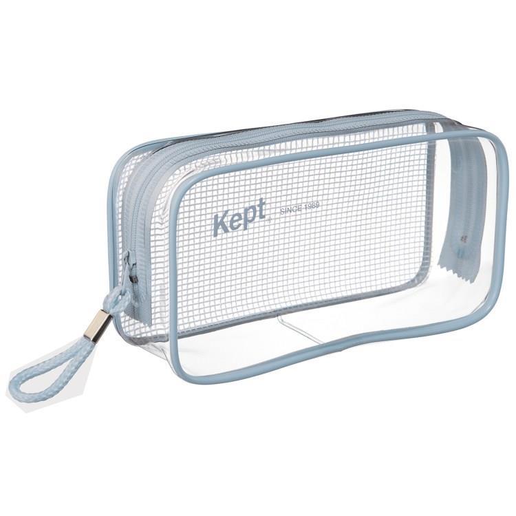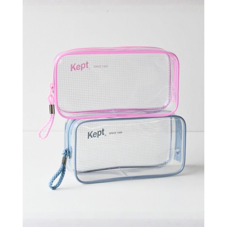 正面をクリア素材、背面にメッシュ生地を組み合わせた「Kept(ケプト) クリアペンポーチ」。
