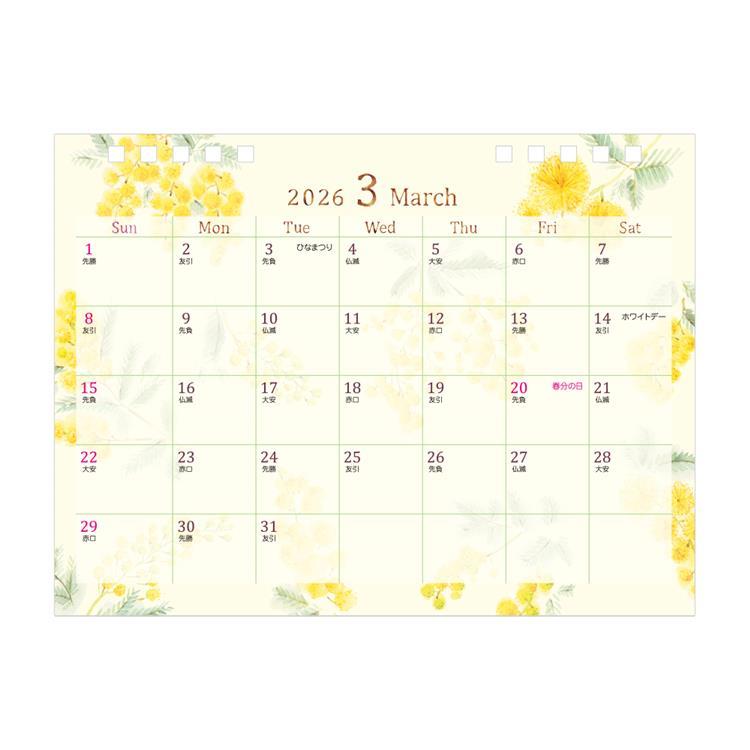 - 2026年1月始まりカレンダー 卓上 リング M カントリータイム 花柄